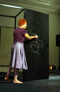 Der Rahmen ist eine rechteckige Quaderkonstruktion aus Metall, in dem >an zwei gegenüberliegenden Seiten je eine Türe eingebaut ist. Die Tür mit einem Plexiglasfenster ist auch für Schattentheater geeignet, die andere Tür ist als Tafel geeignet (man kann darauf mit Kreide schreiben). An den beiden anderen, gegenüberliegenden Seiten, ist der Quader offen. Preis auf Anfrage.
